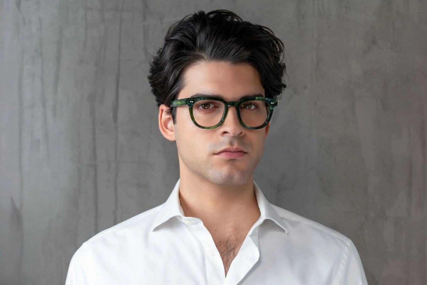Il mio modello del cuore, quello che meglio racchiude l’anima della nostra storia: presente ma mai invadente, vintage ma profondamente attuale. Nasce da un 'mix and match' dei modelli squadrati della collezione Montié di Enzo Monti degli anni ’80, che ho voluto evolvere in uno stile strutturato e contemporaneo. Come ogni mia creazione d’eccellenza, è privo di alette incollate: lo ricavo con pazienza da un singolo blocco di acetato per offrirti una montatura senza interruzioni, pura come la passione che portiamo avanti da generazioni.