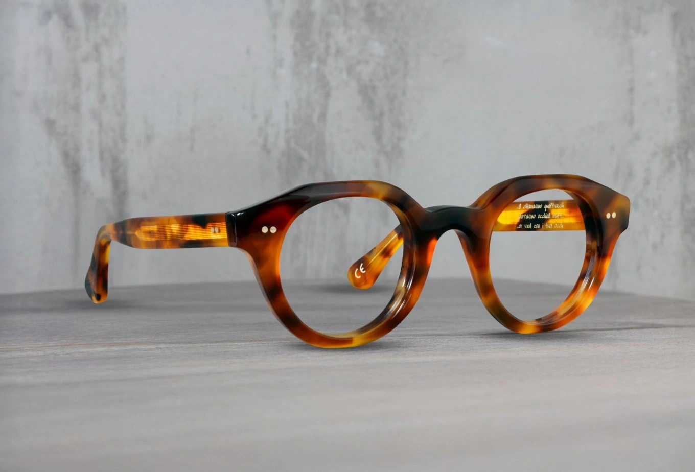 Luminoso e rassicurante come una luce ambrata. Caratterizzato da venature scure che valorizzano la profondità dell’acetato, è una tonalità senza tempo che trasmette equilibrio e calore.
